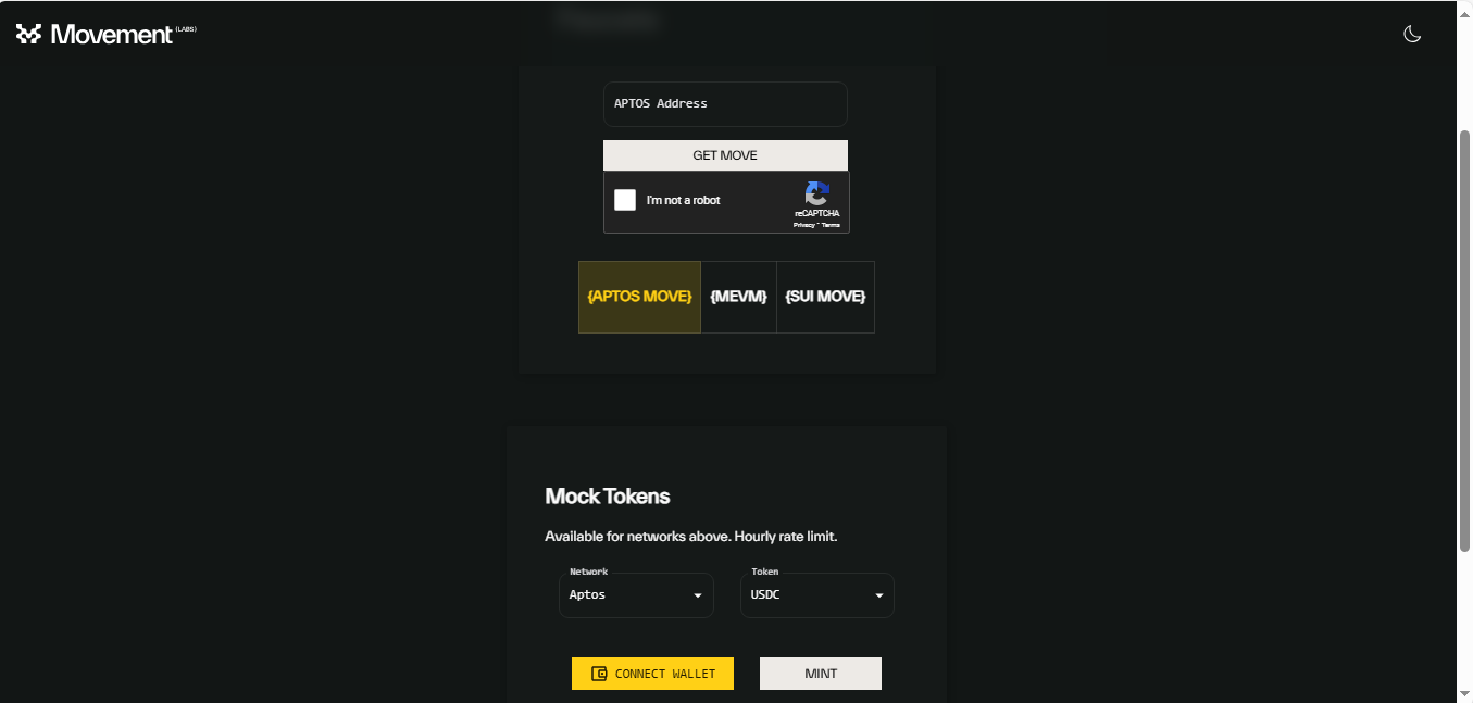 Use this faucet to obtain testnet tokens for any Movement chain.
