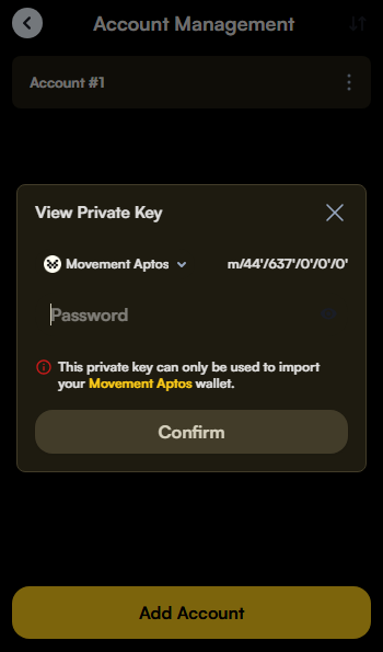 - Enter your Razor Wallet password to view the private key.