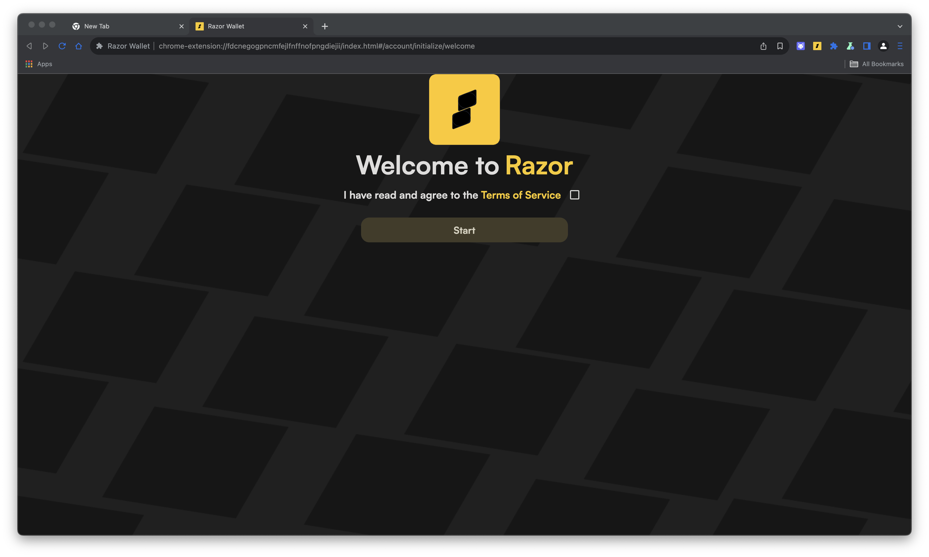 Step 1: Welcome to Razor Wallet- Open the Razor Wallet application or extension.