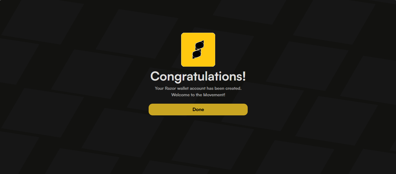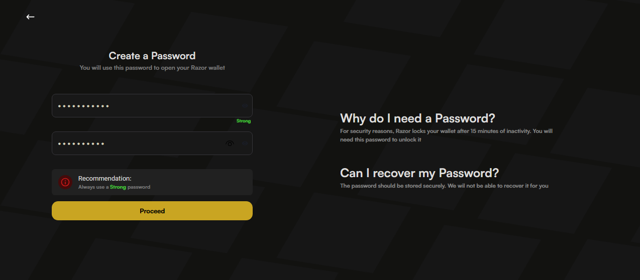 - Set up a password for your Razor Wallet.